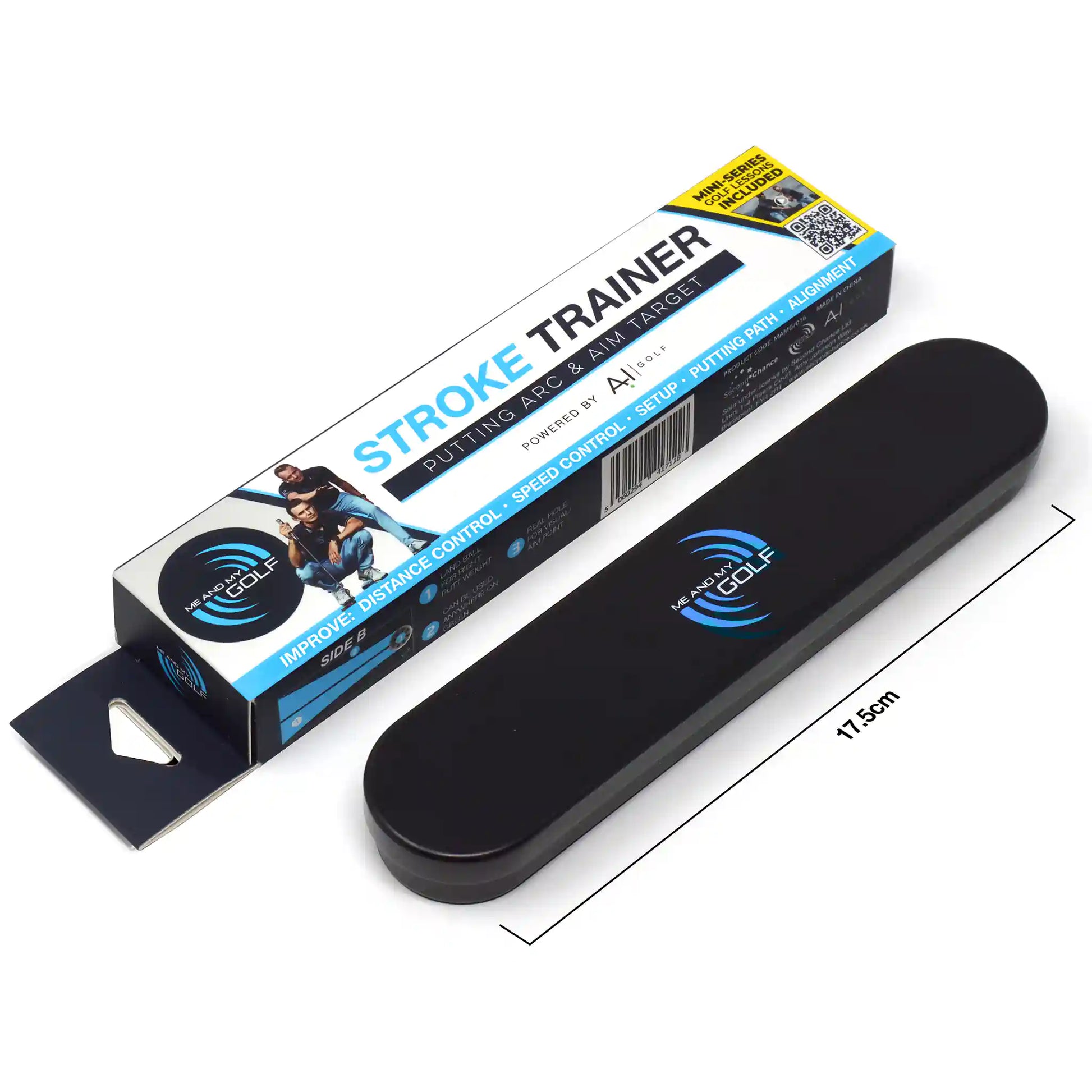 The Stroke Trainer also comes in a handy metal case for easy storage in your golf bag, or to take with you when traveling.
