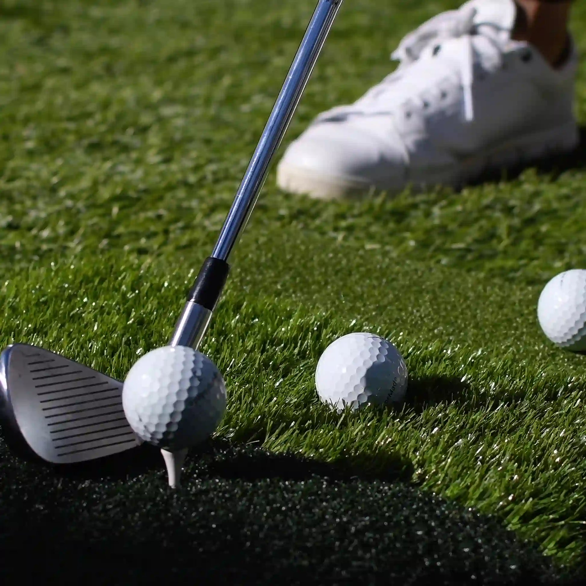 Three types of synthetic grass, imitating the teeing ground, fairway and the rough.