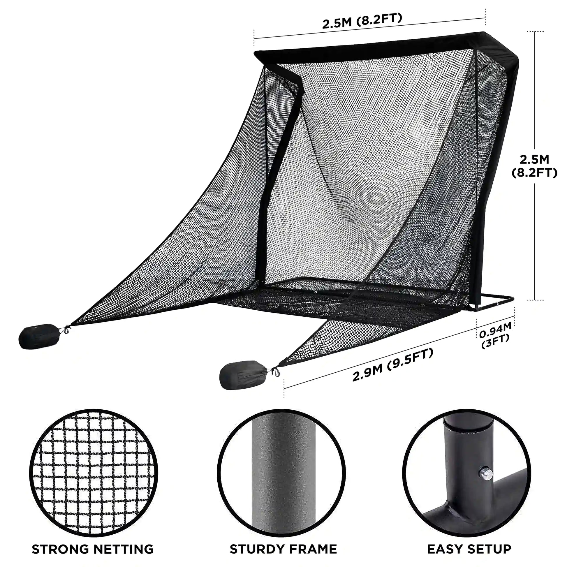 With a compact design of 2.5m x 2.5m x 2.9m, this driving net accommodates a variety of golf shots, providing a versatile practice space for both high and low trajectories.